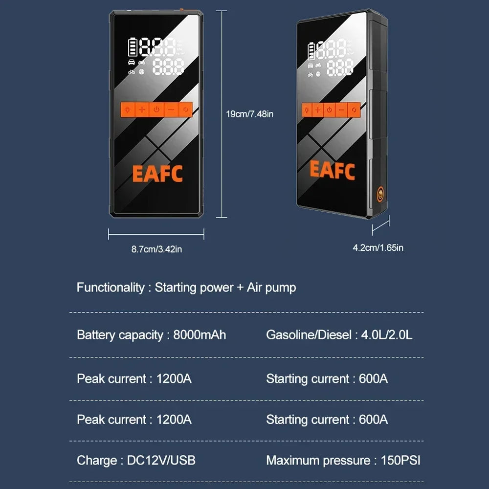 1200A Car Jump Starter 150PSI Tire Inflator 4 In 1 Multifunctional Automotive Emergency Power Power Bank Air Pump with EVA Box