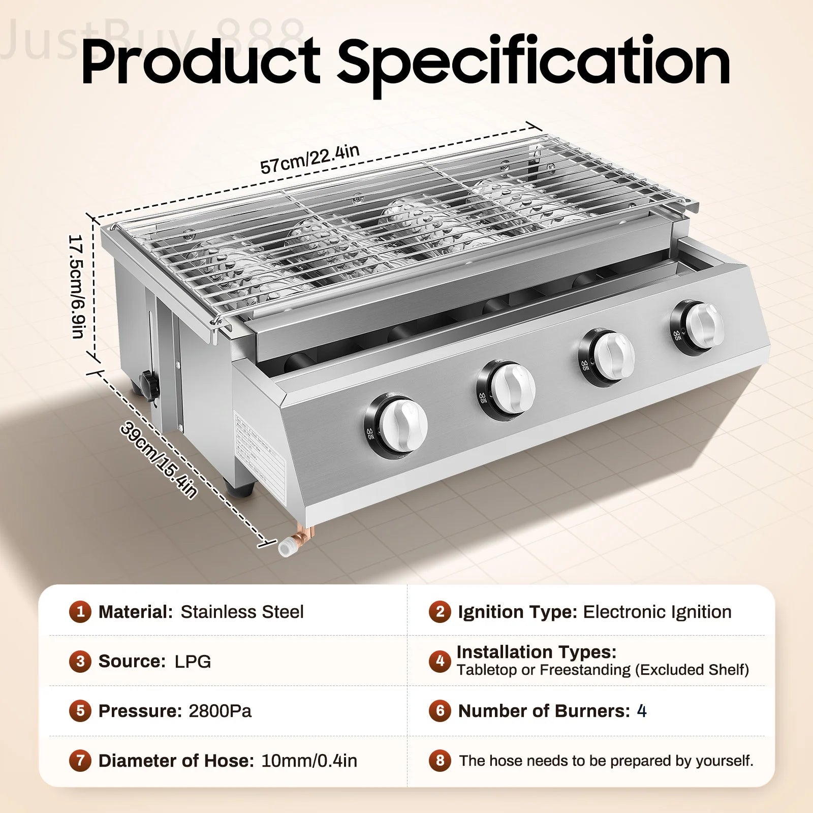 Diameter of Gas Hose: 10mm/0.4in