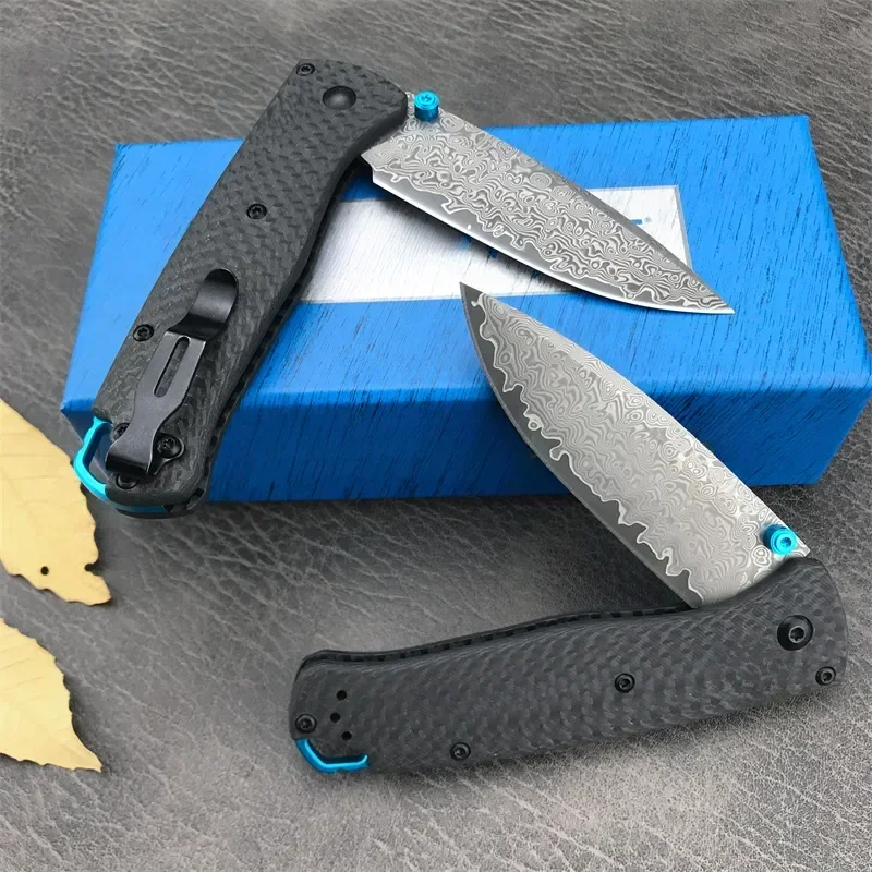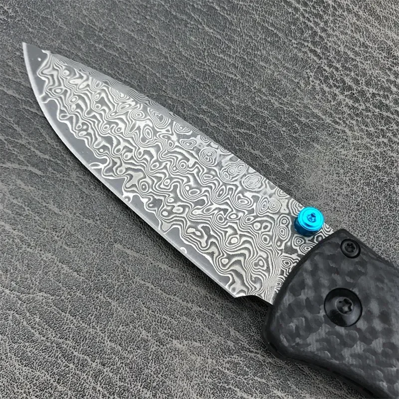 BM 535-3 carbon fiber handle Damascus steel blade outdoor camping Hiking Tactical Tool Rescue multi-purpose pocket folding knife