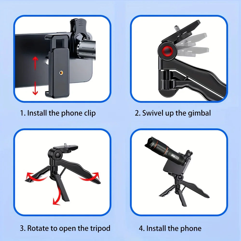 Cell Phone Camera Lenses Kit 18X25 Monocular Telescope Fits Most Smartphones for Birdwatching Traveling, Hunting Football Games