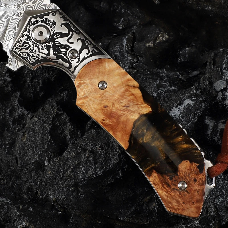 High Quality Men's Folding Pocket Knife,Damascus Steel Camping Folding Knife with Sheath,Outdoor Camping Hunting EDC Knife