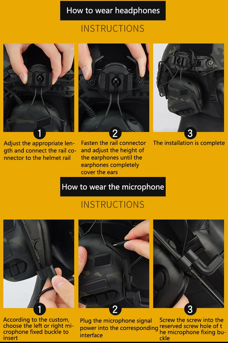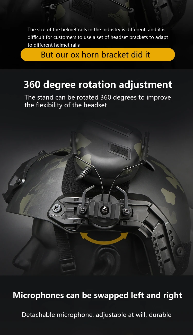 Tactical Helmet Headset with Fast Helmet Rail Adapter Military Airsoft Communication Headphone Outdoor Hunting Shooting Headset