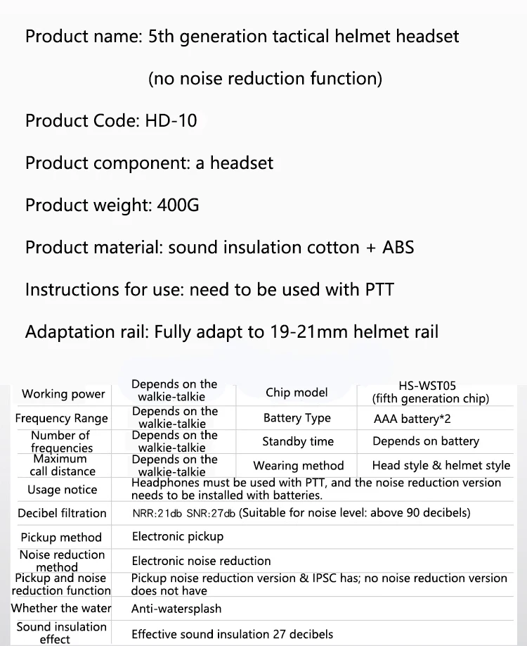 Product name: 5th generation tactical helmet headset (without sound pickup & noise reduction function)